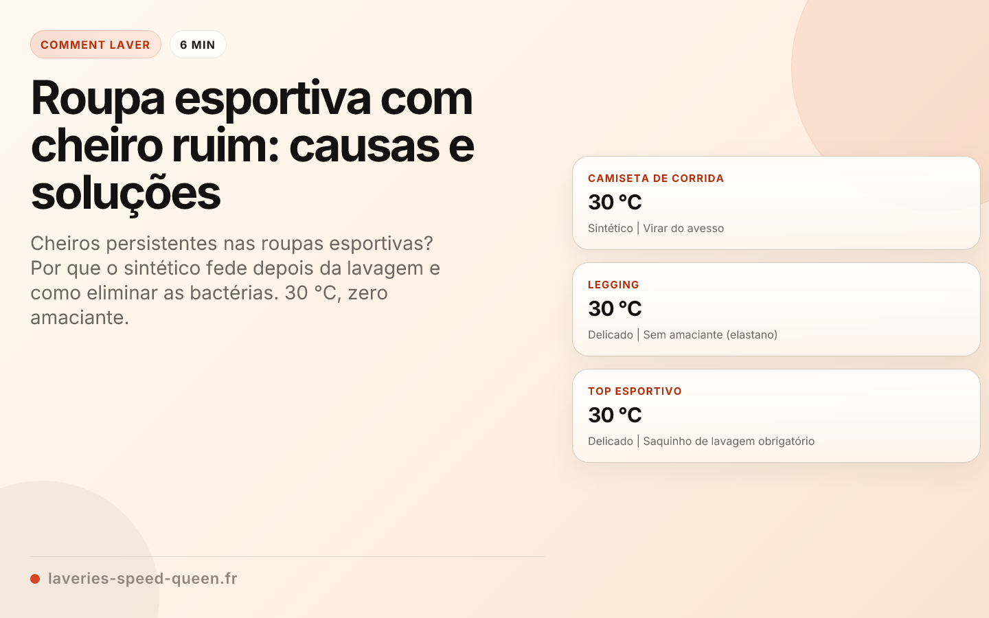 Em resumo: As roupas esportivas de fibras sintéticas aprisionam as bactérias em sua estrutura porosa, formando um biofilme difícil de remover sem um enxágue abundante. Lave-as do avesso, em água fria ou a 30 °C. O amaciante não é recomendado nas fibras técnicas (ele entope os poros). As máquinas profissionais (50-60 L de água por ciclo) oferecem um enxágue especialmente eficaz para esse tipo de tecido.